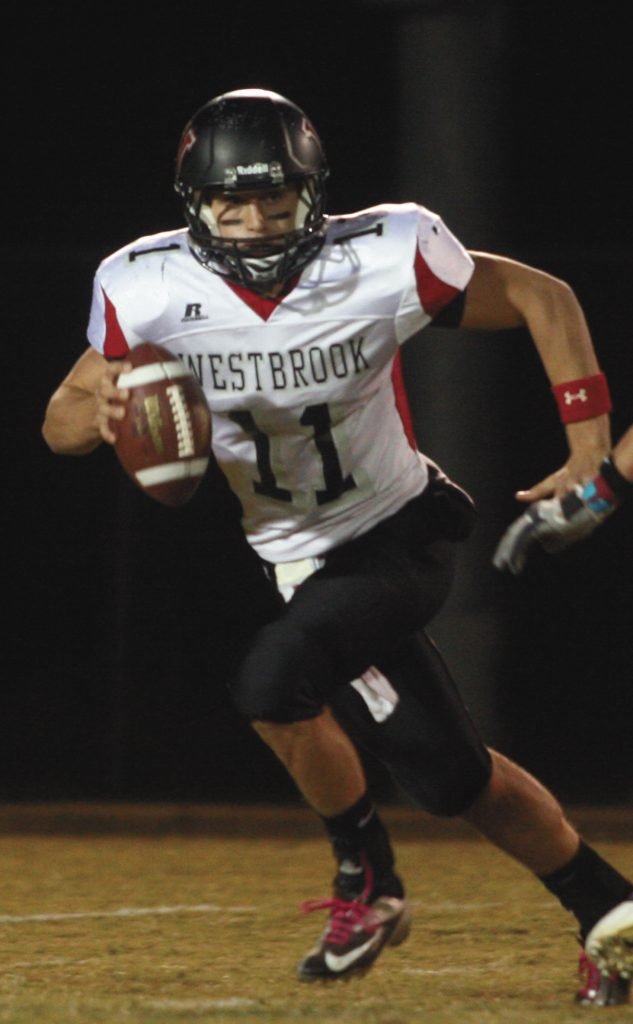 Westbrook Christian senior quarterback Jonathan Ford was 12-of-26 passing for 181 yards and three touchdowns and ran 10 times for 113 yards