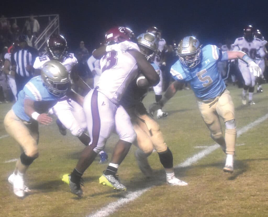 Photo: Coosa Christian’s Grayson Malone tackles Pickens County’s Roz Cunningham as Grant Morgan (right) and Josh Hester (left) arrive during the Conquerors’ 21-12 victory in the Class 1A state football semifinals on Dec. 1 in Gadsden. (Chris McCarthy/Messenger) By Chris McCarthy, Publisher/Editor Unlike Coosa Christian’s Class 1A state football semifinal loss against Pickens County last season, […]
