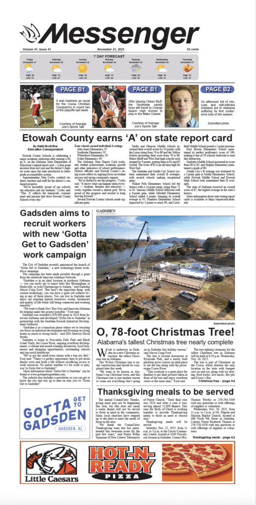 Etowah County Schools is celebrating a major academic milestone after earning a 90, an A, on the Alabama State Department of Education’s annual report card — a four-point increase from last year and the district’s highest score since the state introduced its letter-grade accountability system. Superintendent Alan Cosby credited students, teachers and staff for the […]
