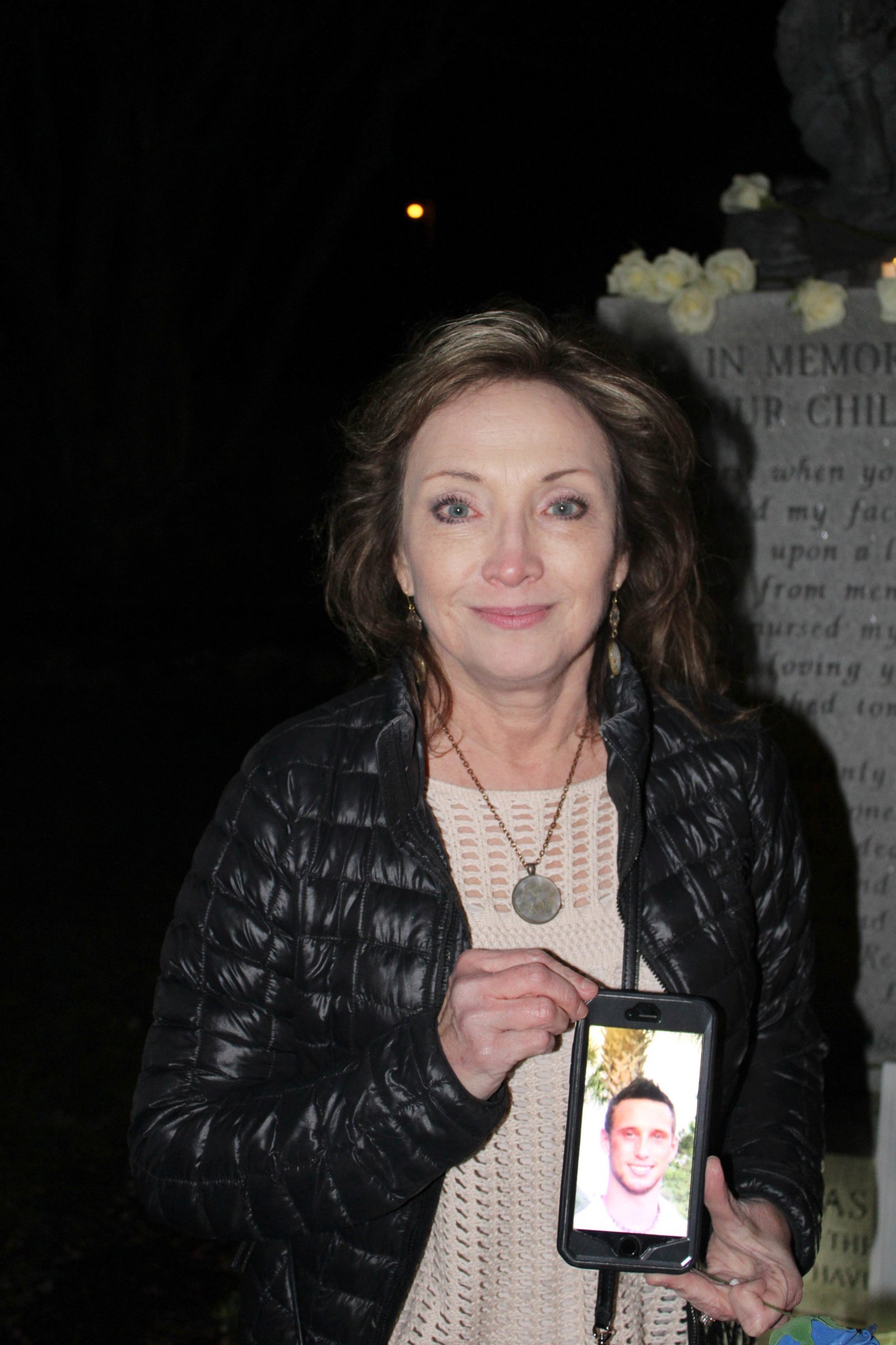Local families who have lost children gather around the Angel of Hope statue in historic Forrest Cemetery in Gadsden. Katie Bohannon/Messenger.