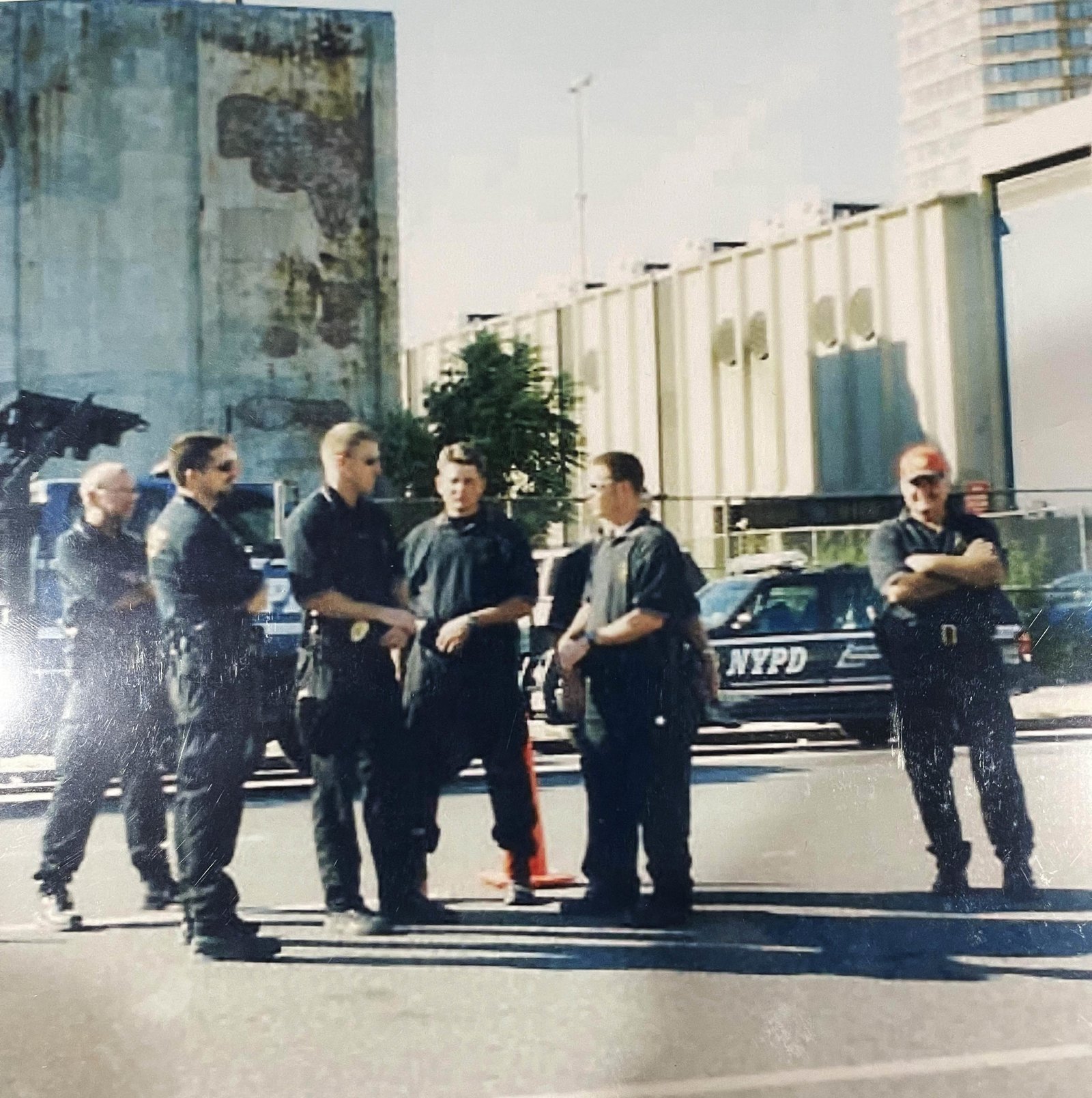 Grant and Mike Jones protected a Greenwich Village police precinct while its bomb squad worked at Ground Zero. The pair spotted an older, grey-haired woman down the street shuffling toward them slowly. When she reached them, Grant and Jones spoke to her and she bent downward, opening a compartment under her walker. She lifted a cake from the storage space and handed it to them, thanking them for coming.