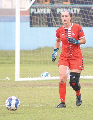 Keiser University goalkeeper and Southside High graduate Grace McClellan celebrates Keiser’s NAIA National soccer championship victory in 2020. Photo courtesy of Grace McClellan.