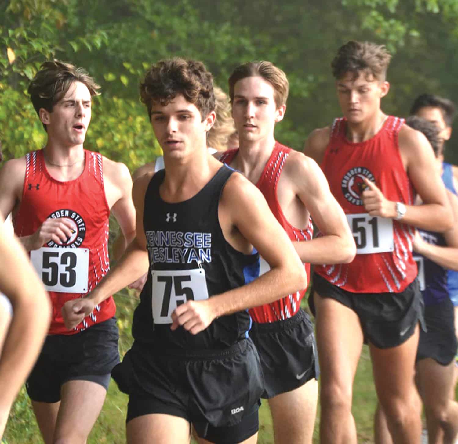 Photo: Gadsden State’s Ashton Vann (53) Lane Griffin (second from left) and Jonah Medders (51) compete in the Mountainside Stride 8K run on Sept. 30 in Chattanooga, Tenn. (Courtesy of Gadsden State)