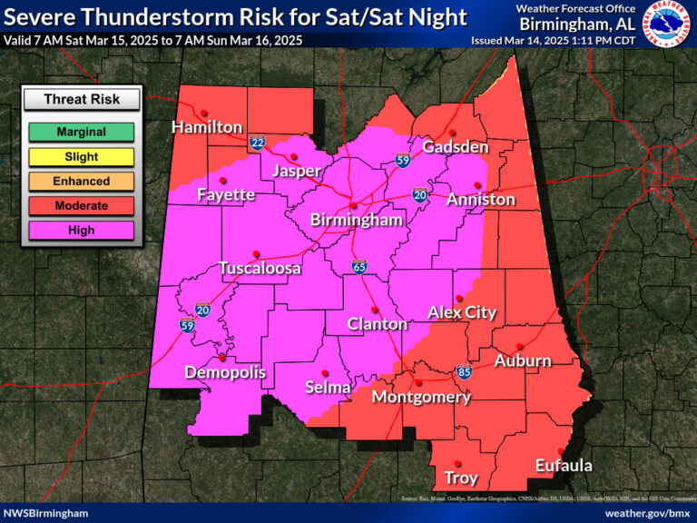 According to meteorologist with the Birmingham forecast office of the National Weather Service based out of Calera, confidence continues to grow that the state will see a significant outbreak of severe weather. Data available on Friday afternoon indicated there will be two rounds of storms on Saturday, March 15.