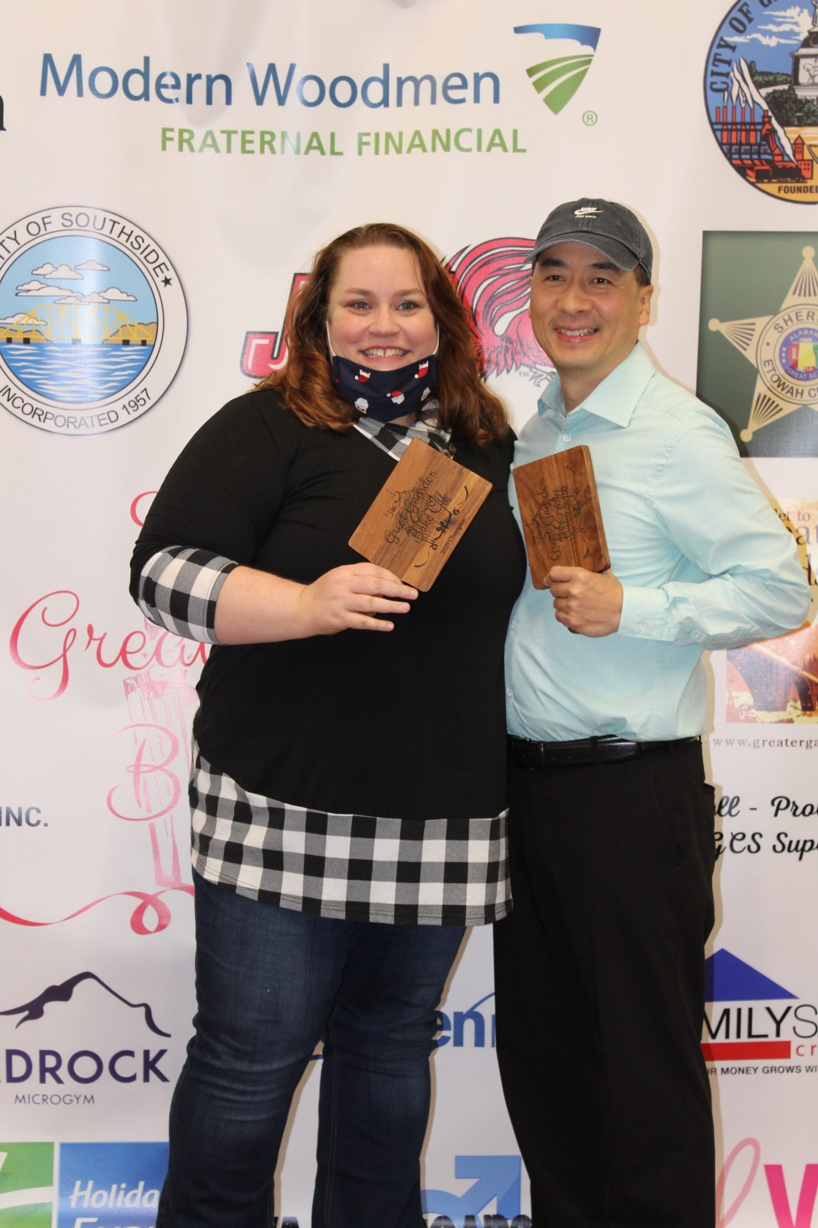 Contestants included Gadsden City Councilman Jason Wilson and Etowah County Commissioner Jeffery Washington (who represented 21 Kids Foundation), Family Savings Credit Union employees Ashleigh Barkley and Jessica Brown (who represented Breakaway Ministries), Gadsden City Schools Superintendent Tony Reddick and Dana Snyder (who represented The Barrie Center), Etowah County Commissioner Jamie Grant and Modern Woodmen of America’s Morgan Lavender (who represented Etowah Sheriff’s Charities), The Joint Chiropractic Gadsden owner Kip Rapp and Family Success Center Executive Director Emma Clapp (who represented Family Success Center) and The Chamber of Gadsden and Etowah County’s Will Mackey and CED Mental Health’s Jocelyn Woolfork (who represented The YMCA).